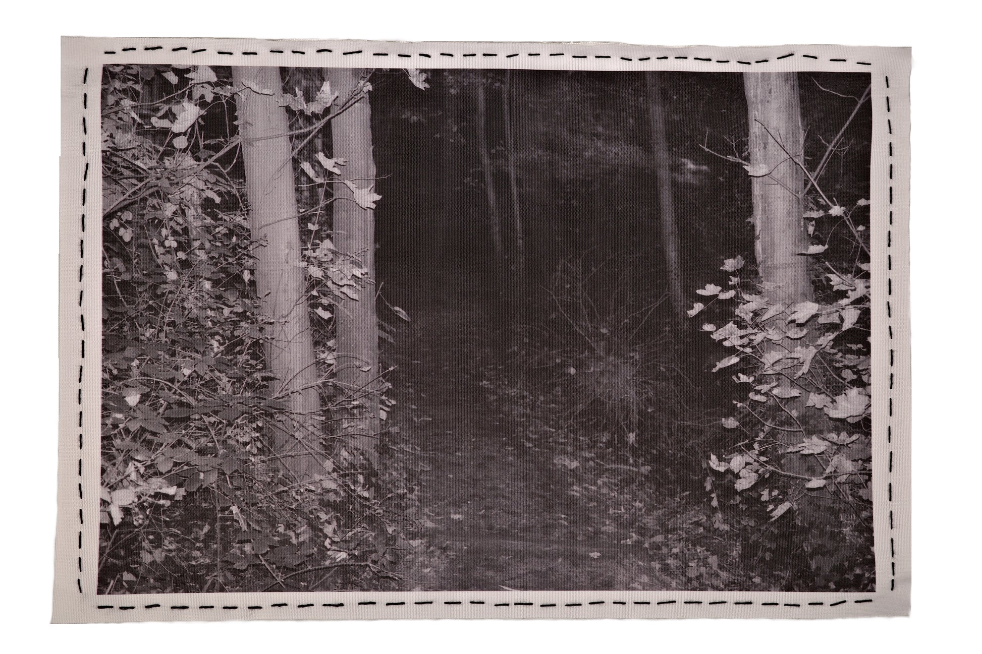 Photography on linen with sashiko border and custom 3D-printed hanging system