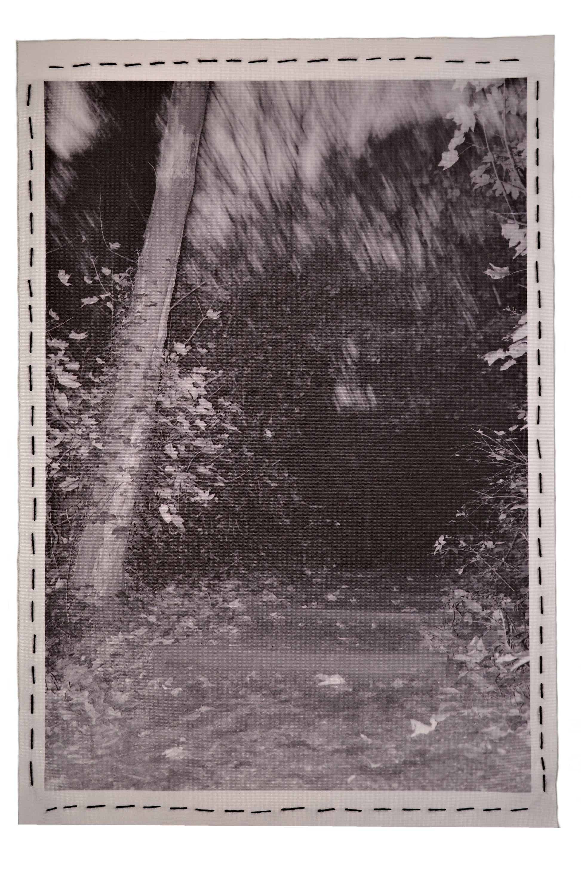 Photography on linen with sashiko border and custom 3D-printed hanging system